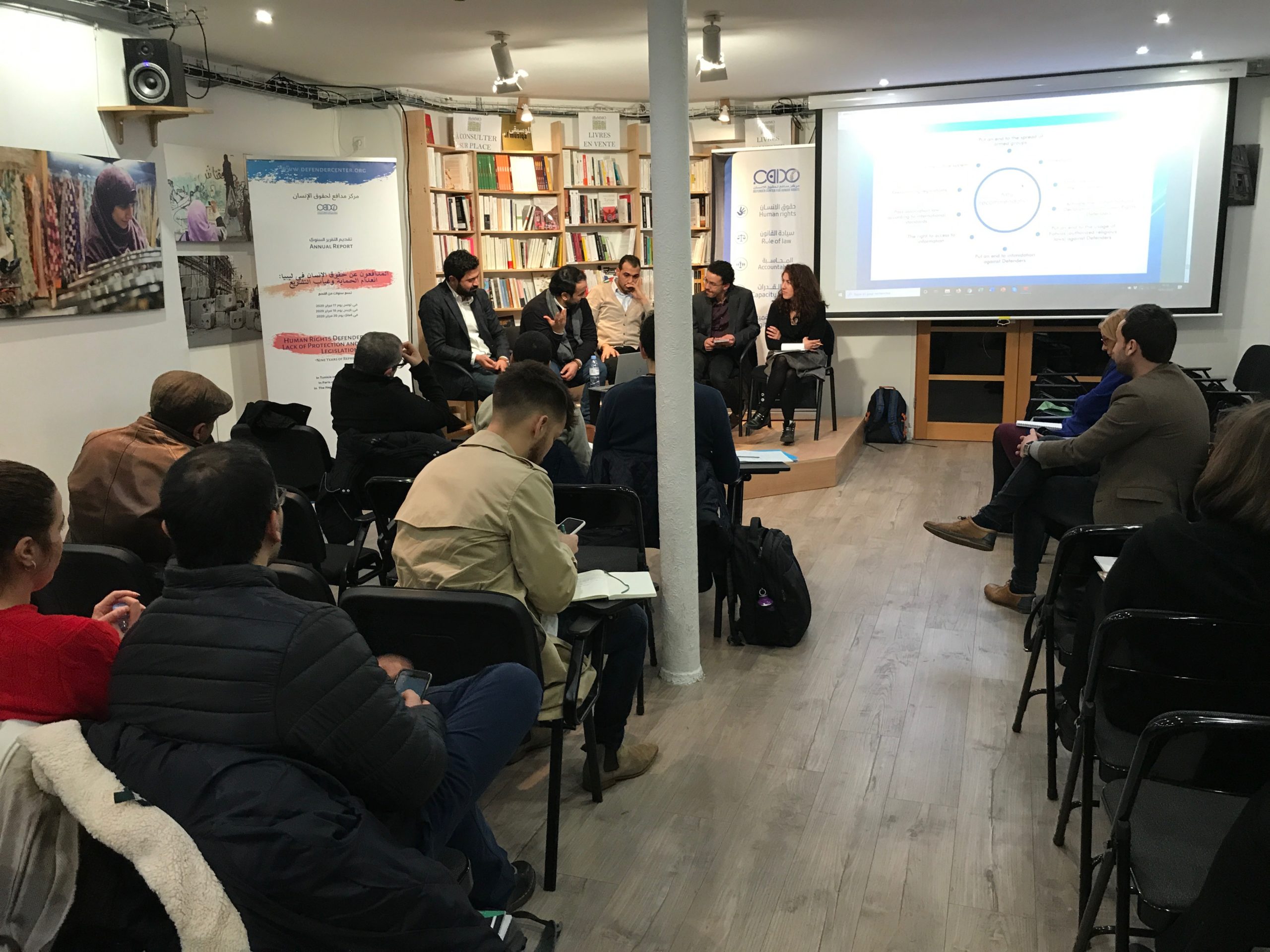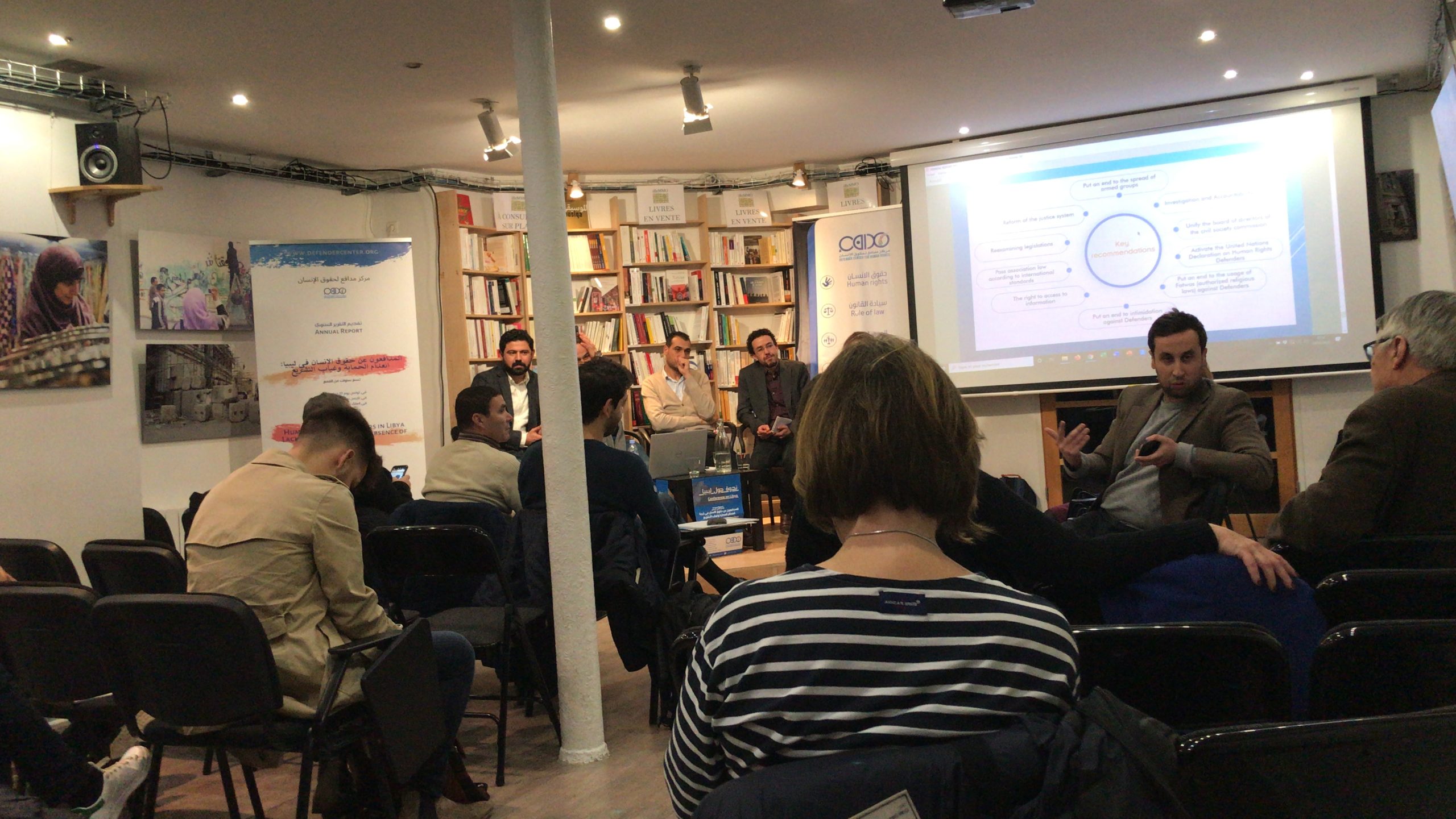 The executive director presented the most important points of the report, during the event at the CHRDA headquarters in Paris on the 18th of February 2020, addressing the analysis of the legislative framework governing the work of human rights defenders, violations against human rights defenders and the restrictions on their freedom of expression, freedom of peaceful assembly, freedom of association and legal flaws related to the draft constitution.