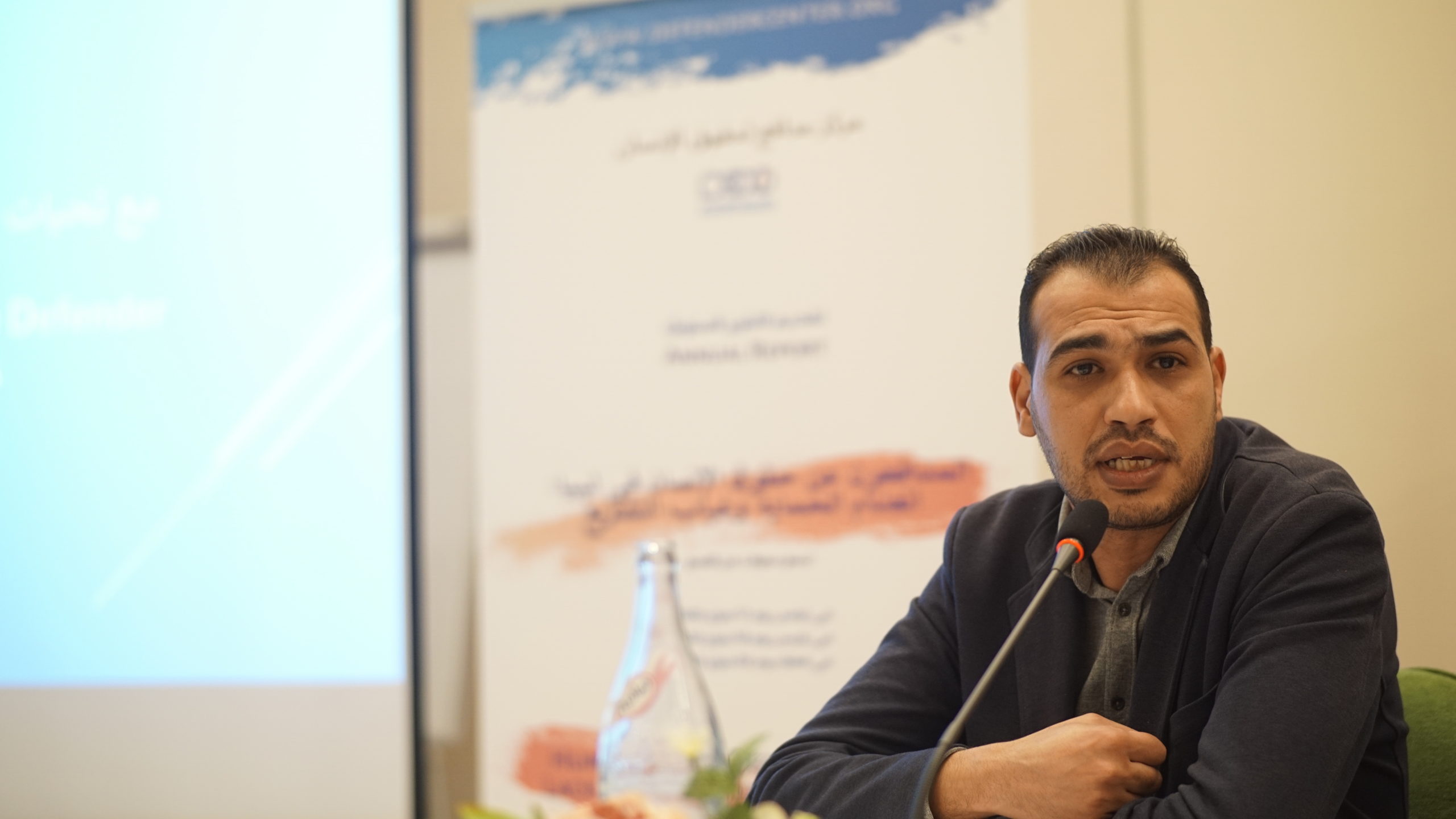 Mohamed Ansari, a researcher and lawyer at the Cairo Institute for Human Rights Studies, started his speech off about a resemblance between the restrictions imposed on freedom of expression and freedom of peaceful assembly between Egypt and Libya, , then he discussed the concept and definition of the Law on terrorism, criticized the flexible and loose standards. Also mentioning the issues defenders face; the restrictions and obstacles they face. Finally, he criticized the draft constitution in Libya, calling for its review, and the establishment of greater guarantees of freedoms and rights in a way that guarantees HRDs work with flexibility, independence, safety by giving a positive example of the South African constitution.