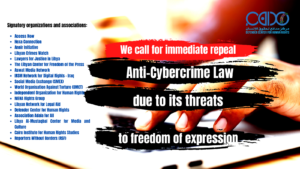 - The Libyan House of Representatives to immediately repeal Anti-Cybercrime Law n°5/2022.